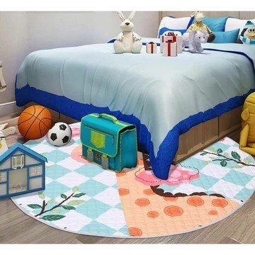 The kids rug uses cotton material, no smell, non-slip, can directly contact the skin, super soft care baby tender skin. Beautiful on the floor in the kids bedroom? play room or living room, a rug that's both stylish and fun. With a storage bag, easy carry. Shoulder straps makes it easy to hang out of the way or carry with you anywhere like to picnic, camping or beach party. The durable fabric makes it easy to clean even after a trip to the beach, simply wipe it or wash it in cold water. Whether you have kids or not, we guarantee you or your children will love it! And you will love how quickly cleanup is. Specifications: Condition: 100% Brand New Material: Cotton Material Shape: Round Diameter: Approx. 1.5m / 4.9ft ThicknessĀ