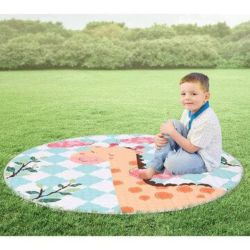 Home Canvas Multipurpose Round Kids Fox Printed Play Mat | Childrens Super Soft Non Slip Fox Printed Rug with Storage Bag for Kids Room