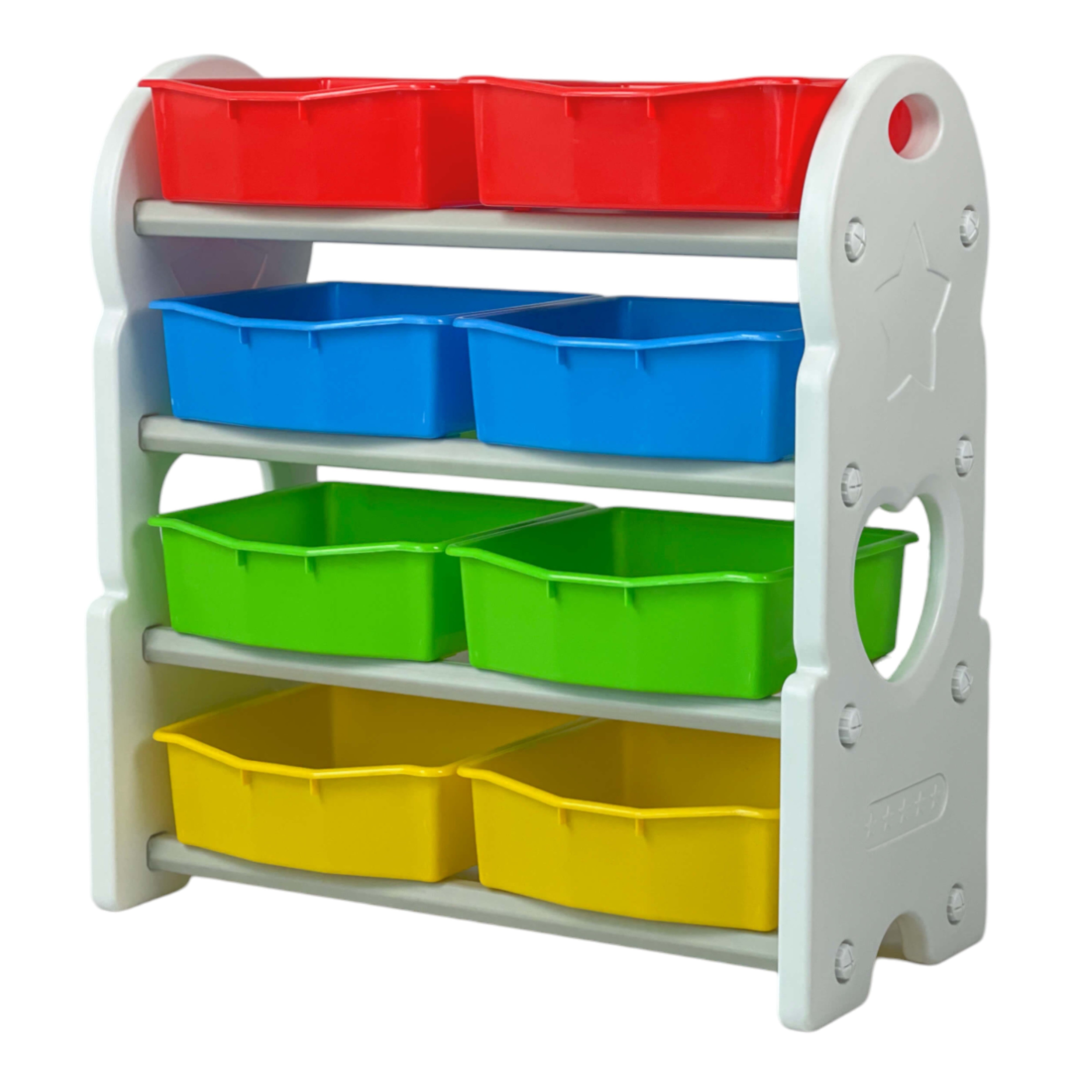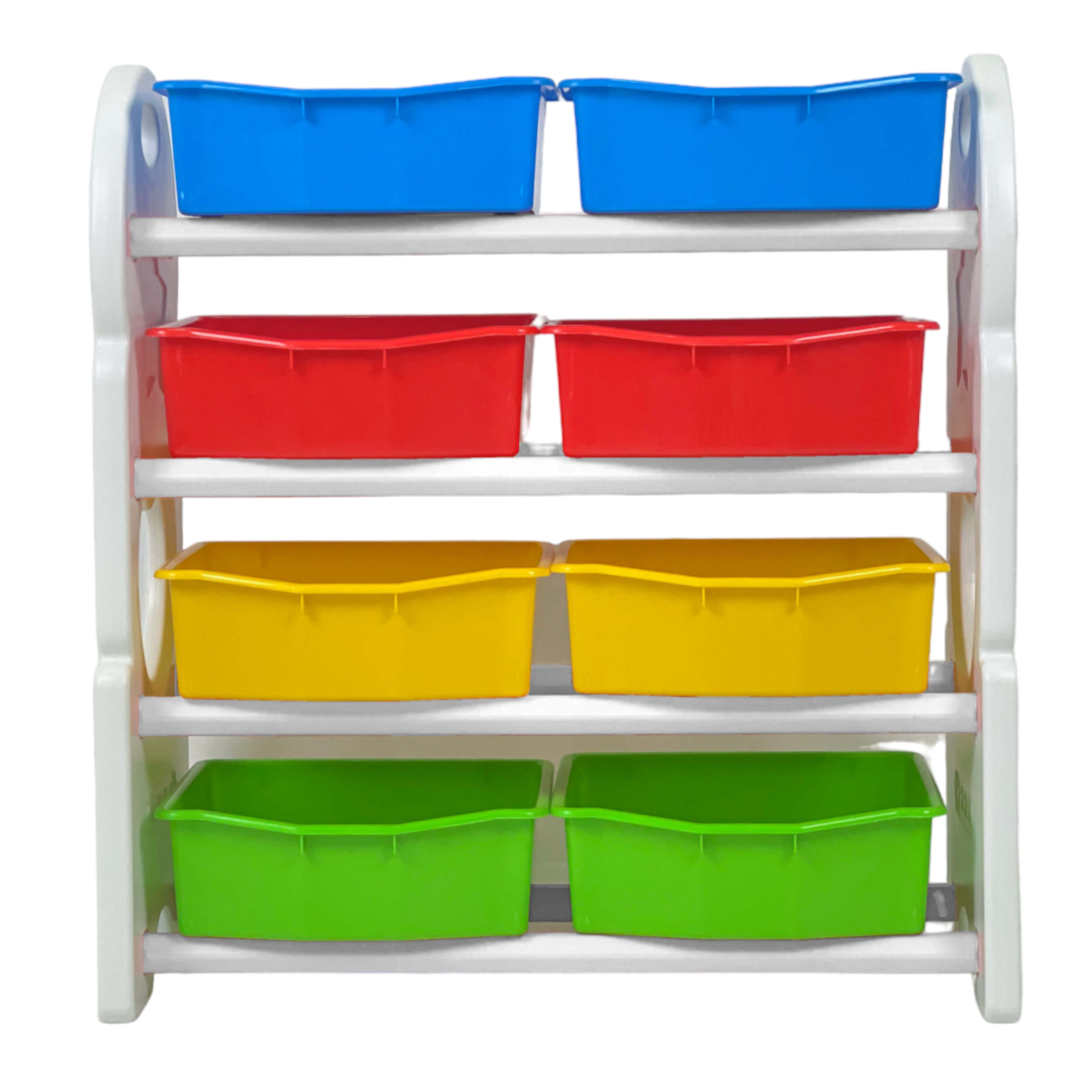 With its small size and accessible shelf height, the organizer allows kids to take out or put back toys, books or other stuff on their own. Each shelf holds a storage box with a lid to keep things safe and secure.