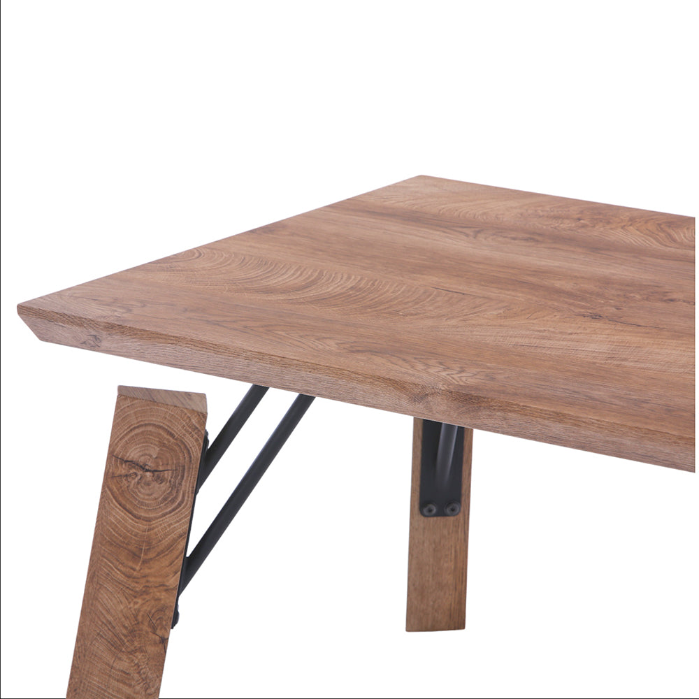 A perfect blend of style and sophistication, this Wooden Side Table makes a riveting addition to any decor setting. Featuring a wide rectangular tabletop to serve scrumptious snacks and beverages, the aesthetically pleasing grain details add a pinch of nature inspired appeal to it. Constructed sturdily from the quality MDF frame, the reinforced block legs are bolstered with Iron bars to provide utmost stability to the overall structure. The natural brown accented frame complements the geometric appeal of this transitional style inspired Side Table, not to mention the striking black coated Iron bars which accentuates the overall structure. A perfect center table for your living space, this piece of furniture blends in with a variety of decor settings.