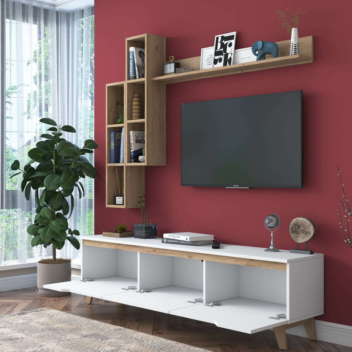 Home Canvas Lana Tv Unit Modern Upto 70in TV - White and Oak