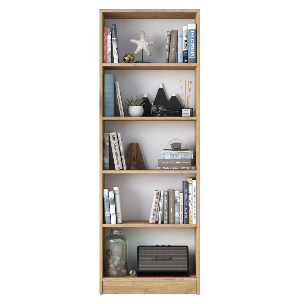 Home Canvas Bookshelf with 5 Shelves Study Room Library Modern Wall Shelf Basket Width 60cm Walnut