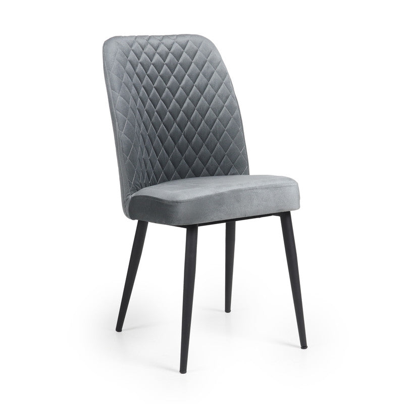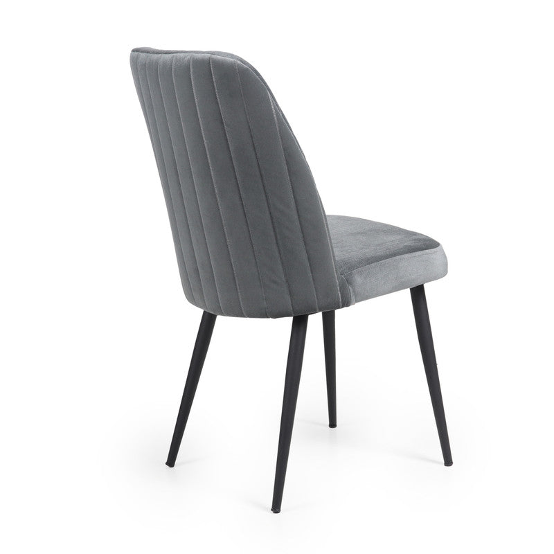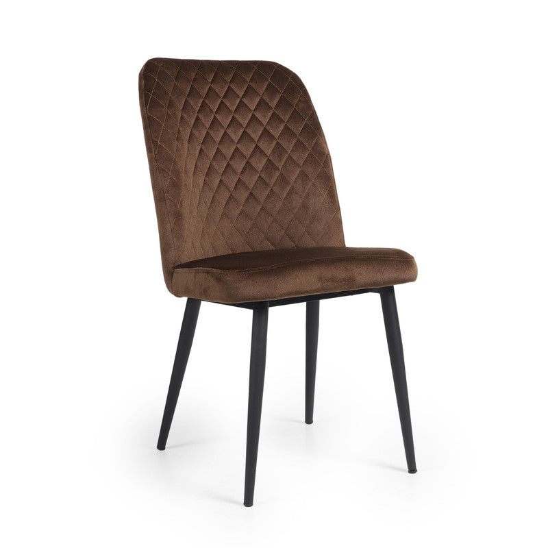 Tufi dining chair is both elegant and practical and has been designed to be a wonderful addition to your dining room, kitchen or living room. Thanks to the wear-resistant and velvety fabric and the ergonomic design, these chairs offer the highest level of comfort. The powder-coated steel frame makes the seat robust and durable. Beautiful, firm and great seating comfort. With velvet cover and exquisite design, this upholstered chair fits different types of rooms. This upholstered chair is available in 4 different colours. The velvet fabric is of excellent quality and is filled with foam for extra comfort. The seat is finished with tight carrots. The 4 black legs are designed for strength and stability and also give the chair a trendy look. With the black legs, you can give the chair different looks in combination with your type of table or interior. For example, industrial, modern, Scandinavian, rural, urban modern and many other styles. Velvet fabric adds a luxurious twist.