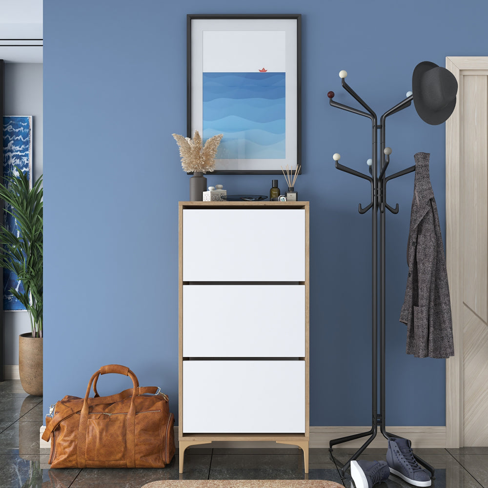 Stylishly organise your footwear with the Otto Shoe Cabinet. This simple and chic design promotes an enviably neat bedroom and offers an elegant home for shoe clutter. Three spacious drawers accommodate all types of footwear, from stilettoes and court shoes to loafers and trainers. Sleek and minimal, Otto generates a serene vibe with its sophisticated styling and unfussy attitude.