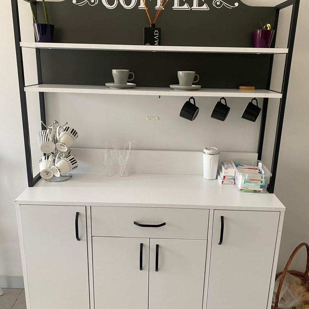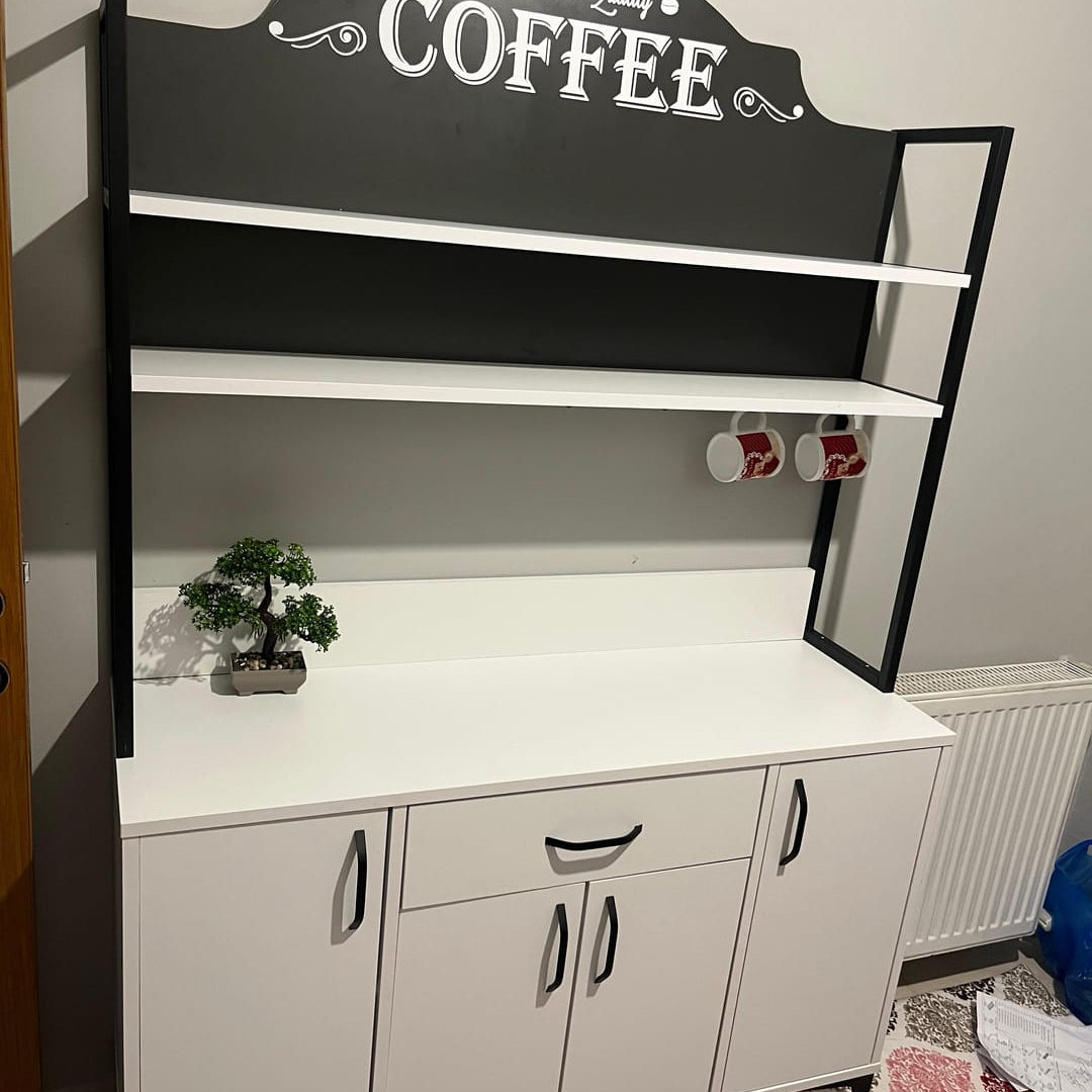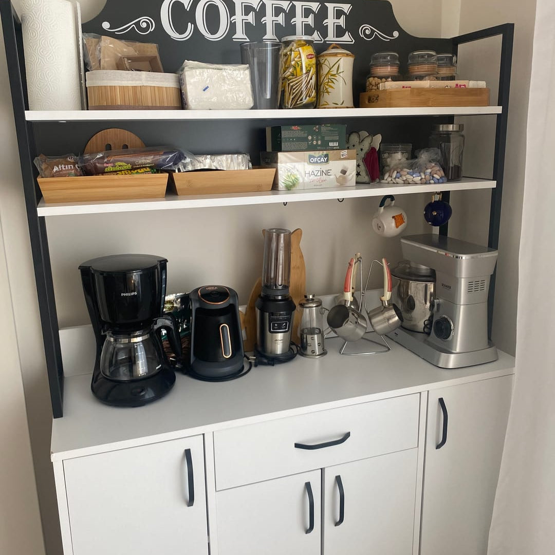 - Open Shelves: Features open shelves for showcasing coffee machines, dishes, or decorative elements, combining functionality with a stylish presentation.