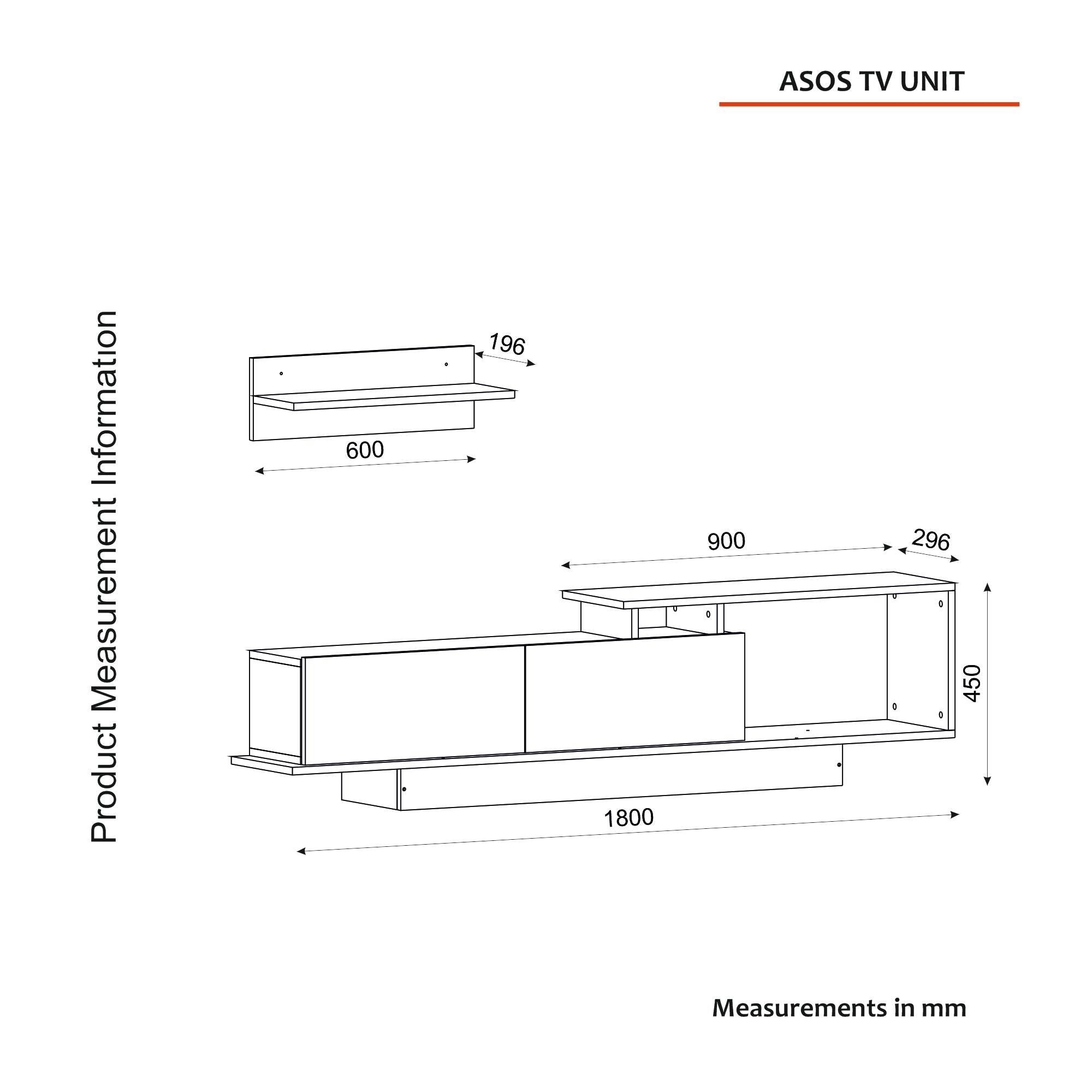 Enhance your entertainment area with the Home Canvas Asos TV Unit with Wall Shelves. Featuring a sleek white finish and modern design, this TV stand provides stylish storage for your television, media devices, and accessories, helping keep your space organized and clutter-free.