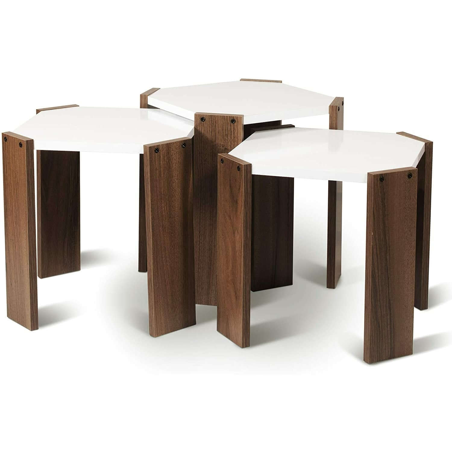 Home Canvas Nested Coffee Table for Living Room | Contemporary Modern Nesting Coffee Table Set of 3 - Walnut/White